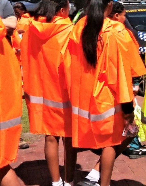 *School children receiving their tags from the Community Safety Department of the Provincial Government of the Western Cape, Road Safety Division. Tags designed and sponsored by the Division